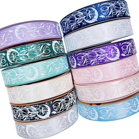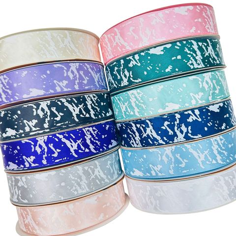 סיטונאות 1 אינץ 48y לבן דבק דפוס צבע סאטן עבור עטיפה מתנה קשת